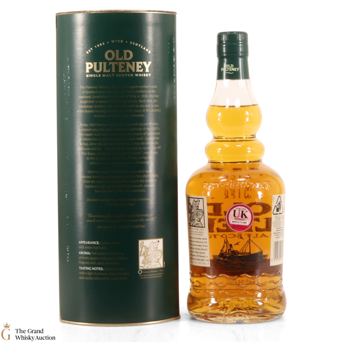 Old Pultney is known as the Maritime Malt due to the distillery location at the very North of Scotland and this is honoured with the unique shape of the bottle.