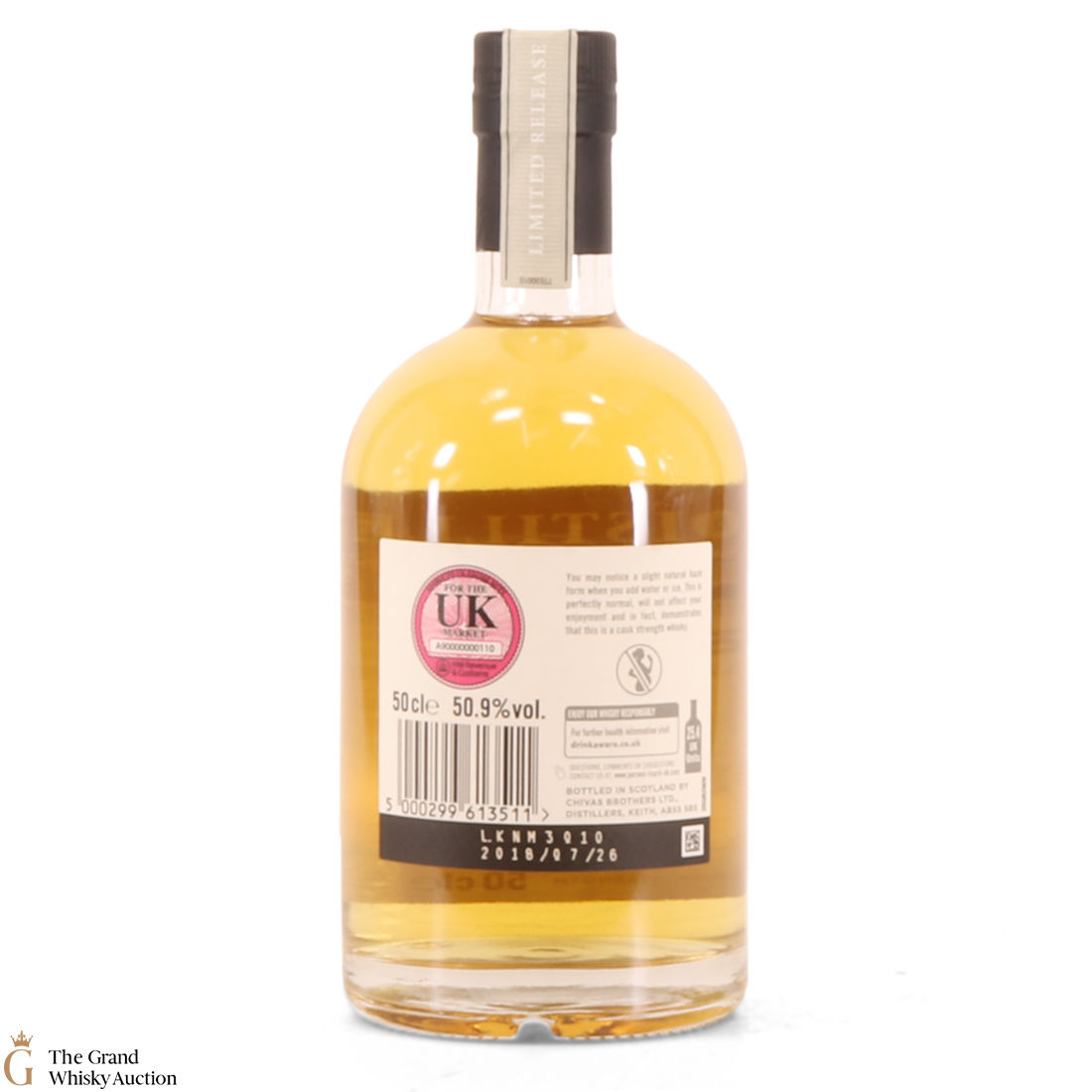 Due to the various ages of bottles and their seals, the condition of liquid is at the buyer's discretion and no claim can be lodged against failure/leakage in transit. Loss and breakage cover is available at 3% of the hammer price as standard. If the lot is not insured, no claim can be lodged against the courier or The Grand Whisky Auction for breakage or loss in transit.