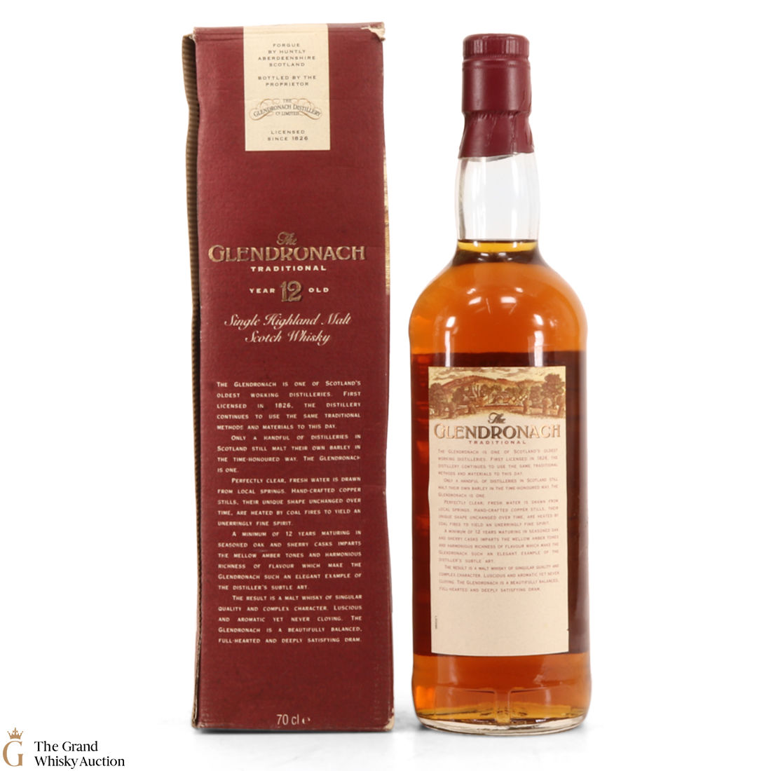 This is an old bottling of GlenDronach 12 Year Old Traditional single malt. It was matured in seasoned oak and Sherry casks. This is a bottle from the 1990s.