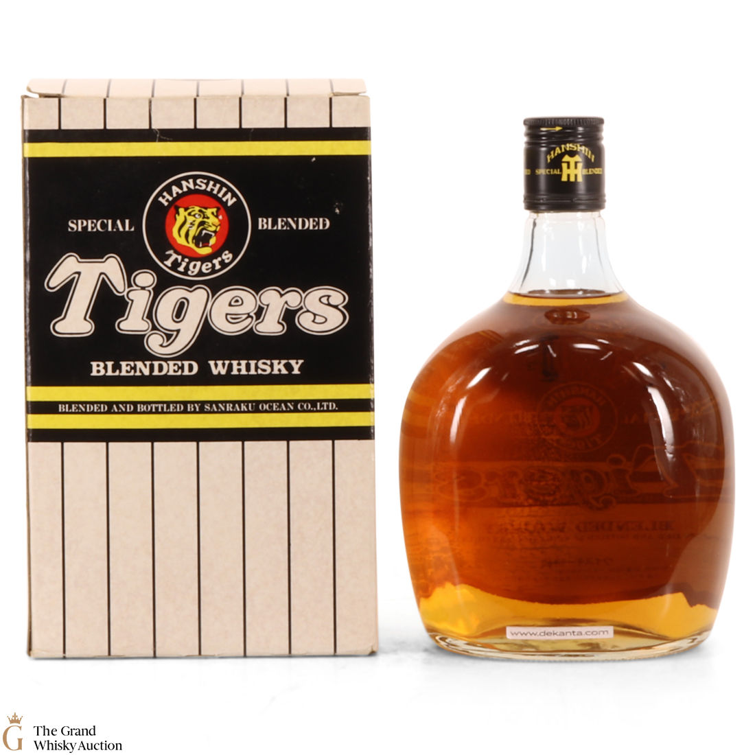 A bottle of Hanshin Tigers Special Blended whisky, blended and bottled by Sanraku Ocean Co. Ltd. This is a Karuizawa-based blend, highly popular with collectors. This particular bottling was released in 2003, to celebrate winning the Japanese baseball championship of Hanshin Tigers 2003. This 760ml bottling is very rare.