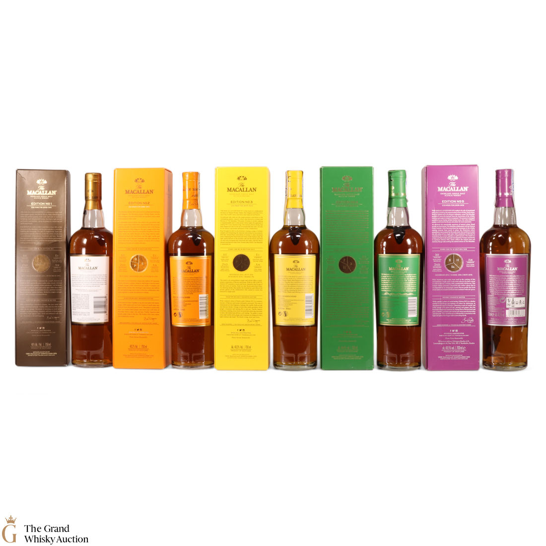 This lot brings together the Macallan Edition set to date, comprising of Edition no. 1, 2, 3 4 and 5 in the annual limited edition series.