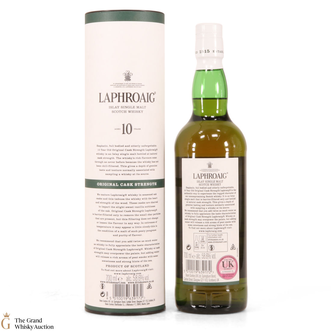 This original cask strength bottling of the medicinal 10 year old from Islay's bestselling distillery, Laphroaig. In making Laphroaig, malted barley is dried over a peat fire. The smoke from this peat, found only on Islay, gives Laphroaig its particularly rich flavour.