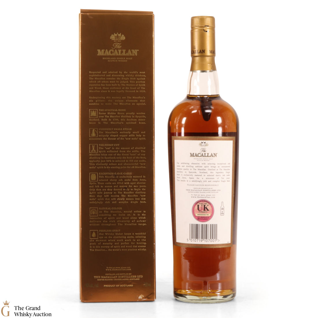 A 10 year old single malt from The Macallan Distillery. It has been exclusively matured in selected sherry oak casks from Jerez, Spain.