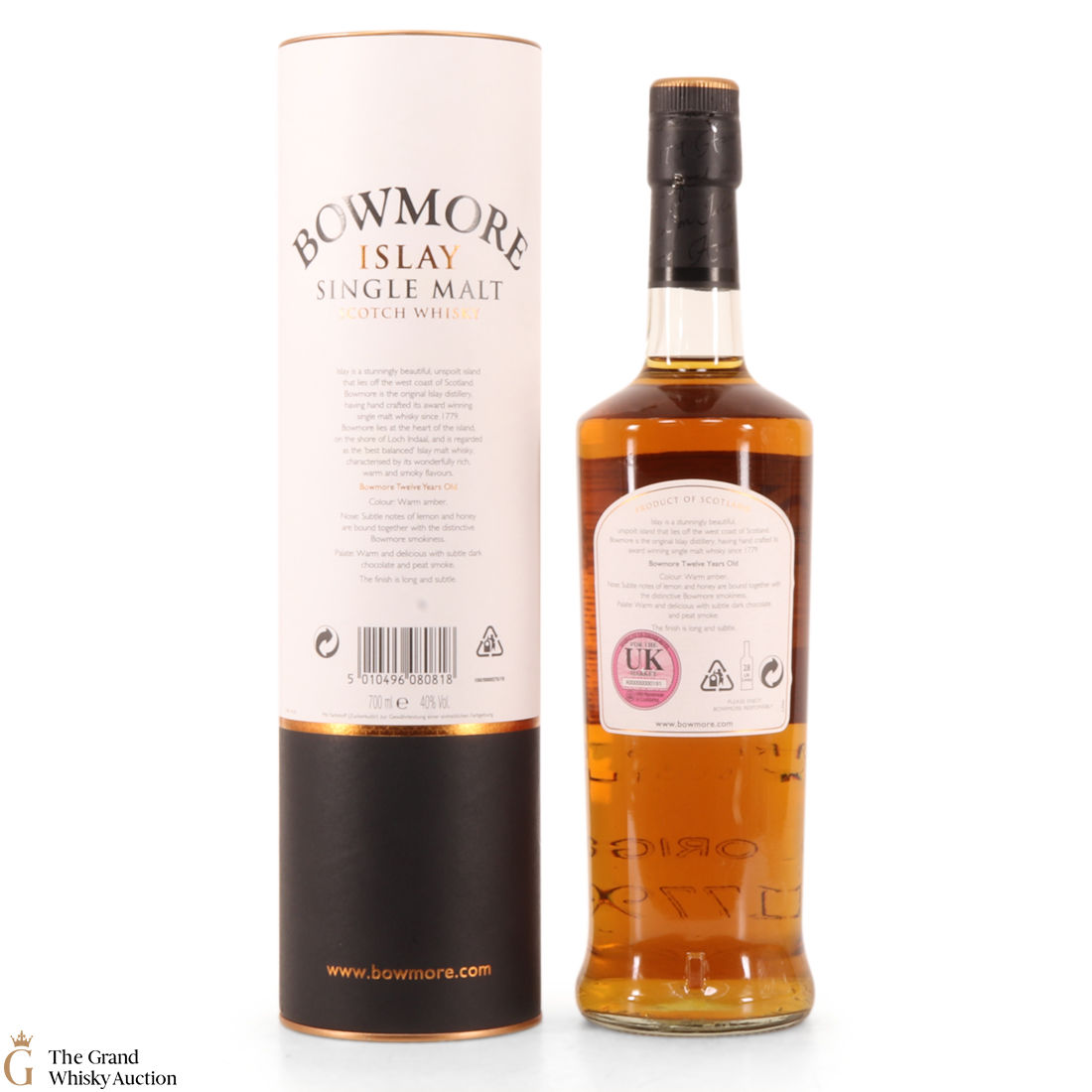 This is a 70cl bottling of 12-Year-Old Bowmore. This single malt has coastal notes with gentle peat. This bottle is Original series which is a newer release.