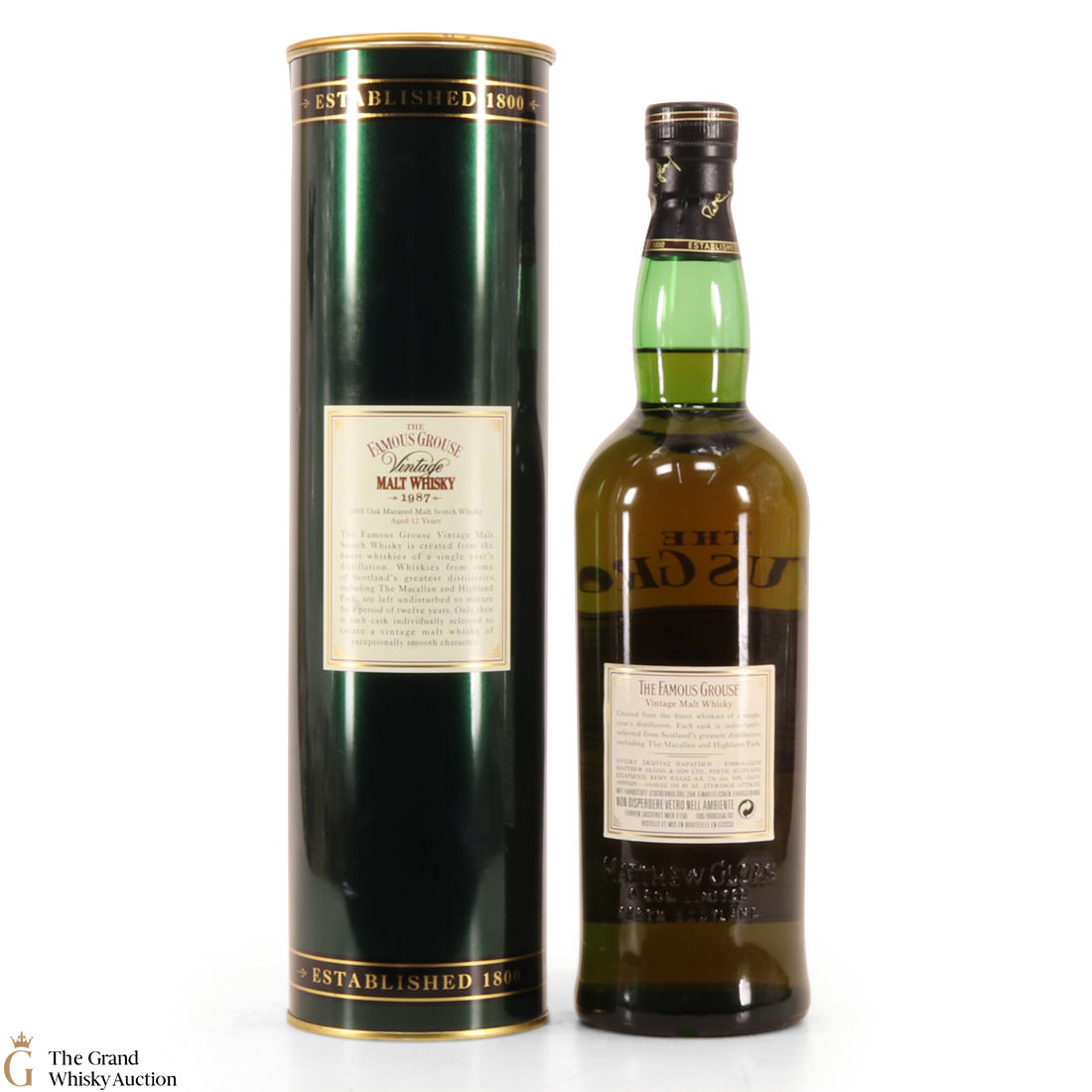 This is bottling of Famous Grouse - 1987 Vintage, which was released following the success of the 1986 vintage. This vatted malt from Famous Grouse includes Highland Park and Macallan.