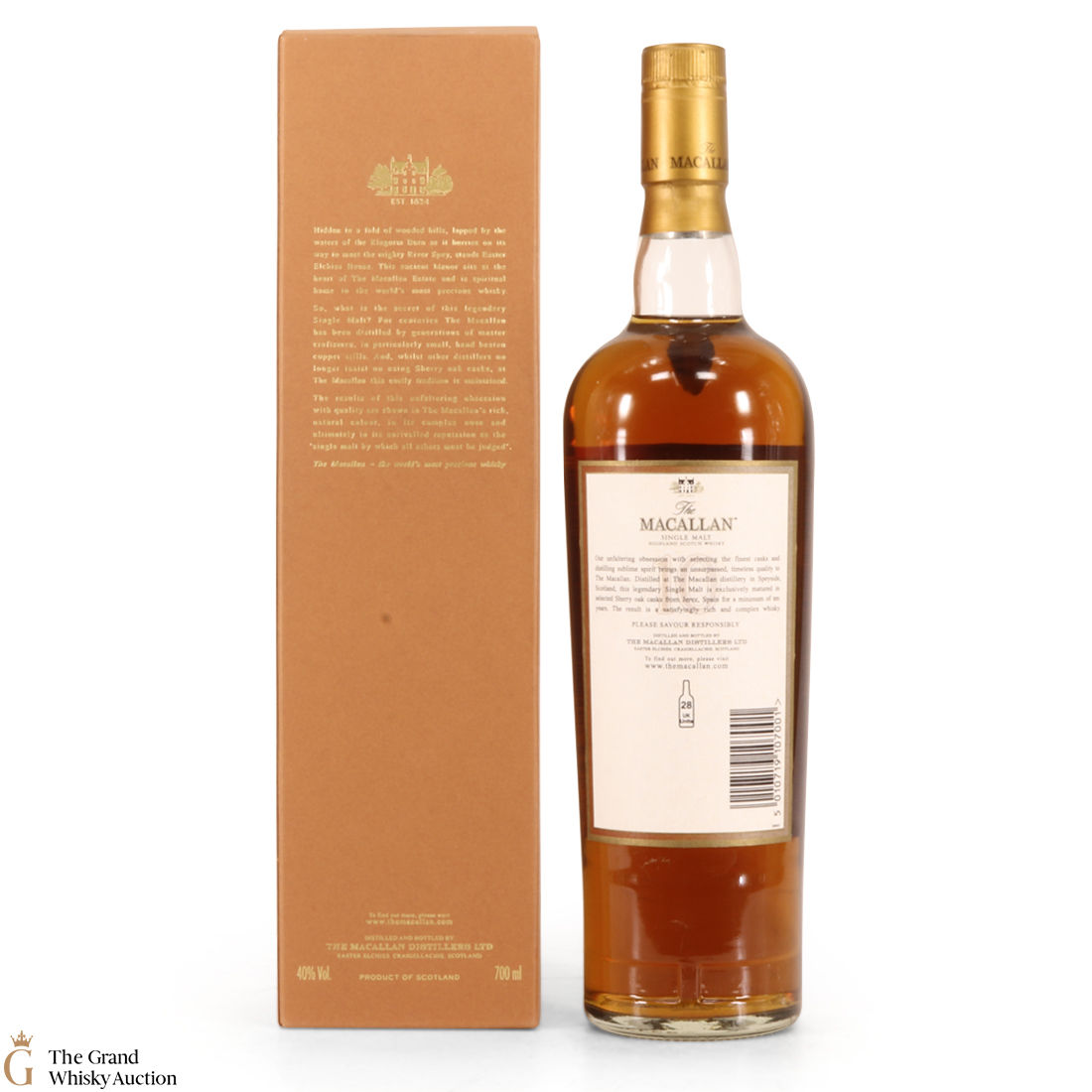 A 10 year old single malt from The Macallan Distillery. It has been exclusively matured in selected sherry oak casks from Jerez, Spain.