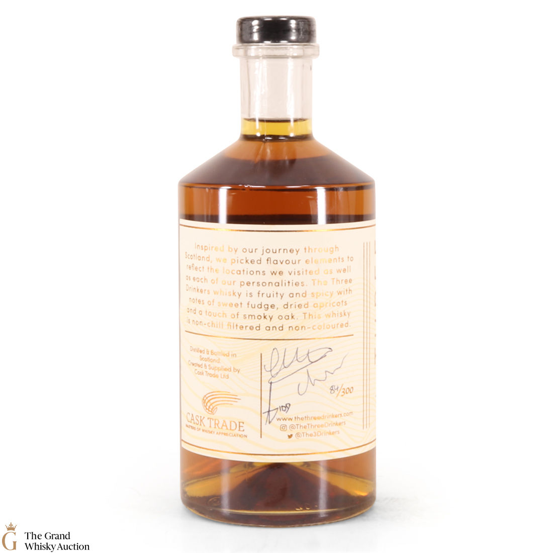 Produced by the hosts of Amazon Prime TV show The Three Drinkers, Aidy Smith, Helena Nicklin and Colin Hampden-White. The Three Drinkers Scotch Whisky Cask Selection No. 1 is a 17 year old blend, with flavour elements inspired by their journey around Scotland. The back label of each bottle has been signed by the trio!
