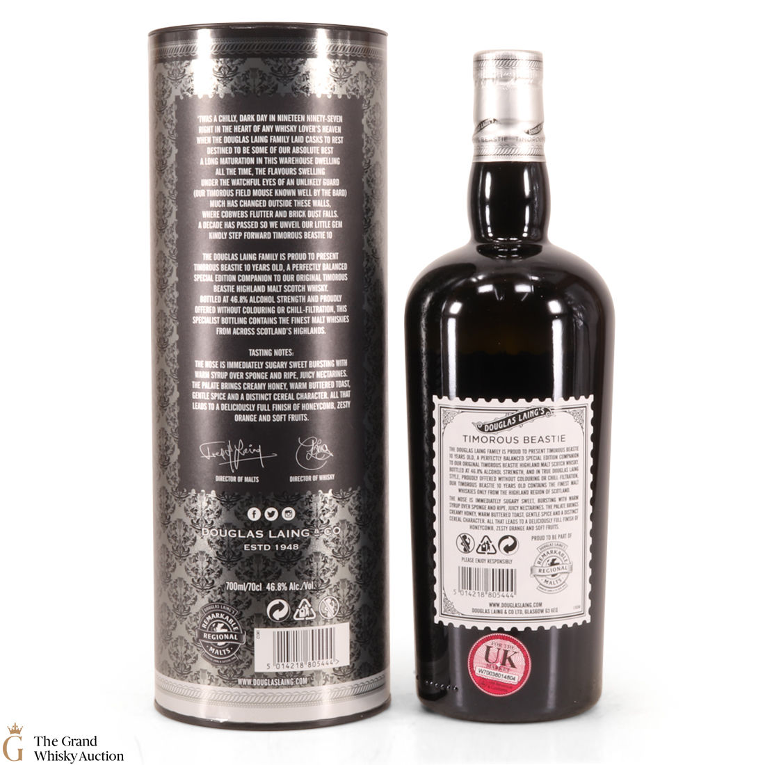 A limited-edition bottling of this 10 year old small batch #1. The Timorous Beastie 10 Year Old Highland blended malt Scotch whisky was matured for 10 years and has been bottled at 46.8% ABV. It has tasting sweet tasting notes including warm syrup over sponge and ripe, juicy nectarines.