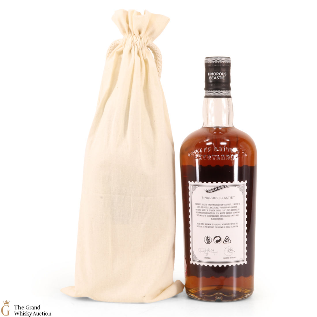 A limited-edition batch of only 400 bottles, which were exclusively available online. The Timorous Beastie 16 Year Old Winter Edition Highland blended malt Scotch whisky was matured exclusively in a Spanish Sherry butt and has been bottled at 45.1% ABV. It has tasting wintery tasting notes including Christmas cake, blood oranges and ginger.
