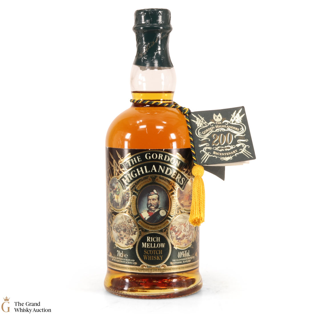 Gordon Highlanders scotch whisky is a blended whisky. It is named after the Gordon Highlanders regiment of the British Army. This bottling celebrates the Bicentenary of the Gordon Highlanders Regiment 1794-1994 which was named after the Clan Gordon.