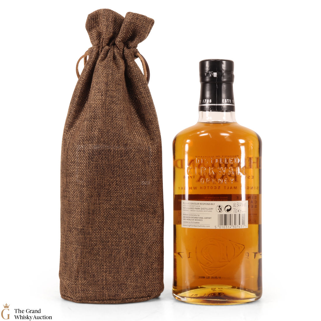 This Highland Park Single Cask Edition was bottled in 2018 exclusively for Aberdeen International Airport and World of Whiskies. With just 610 bottles available, the 12-year-old single malt whisky is drawn from an intriguing mix of American/Spanish oak cask and bottled at a cask strength 64.4% ABV.