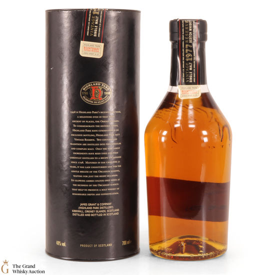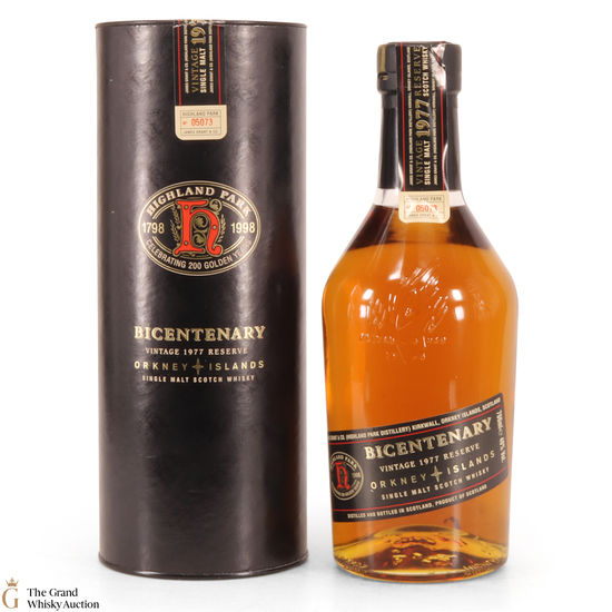 A bottling of 1977 vintage Highland Park, released at 21 years old to celebrate the bicentenary of the distillery in 1998. This was is a very collectable bottling which is increasing hard to find.