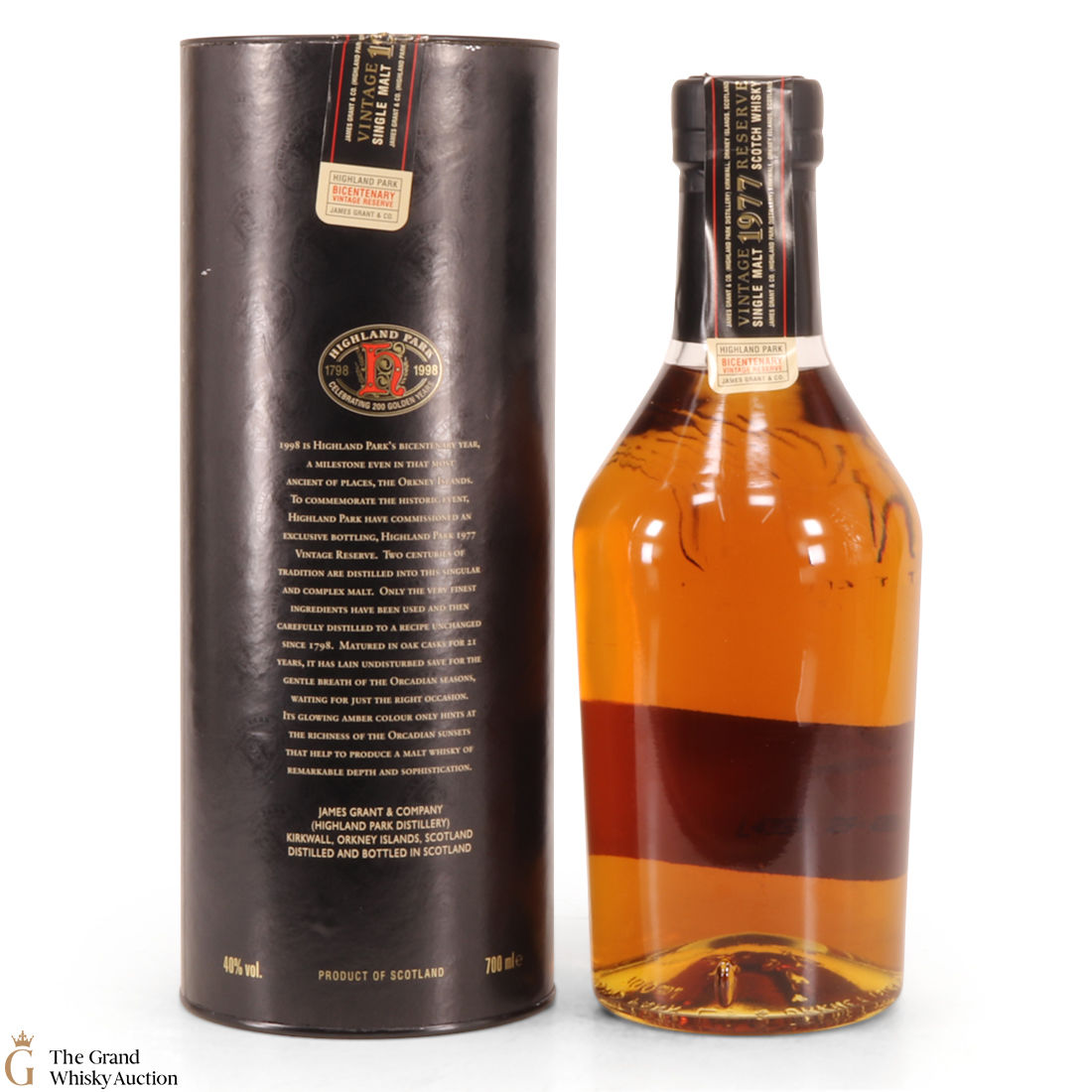 A bottling of 1977 vintage Highland Park, released at 21 years old to celebrate the bicentenary of the distillery in 1998. This was is a very collectable bottling which is increasing hard to find.