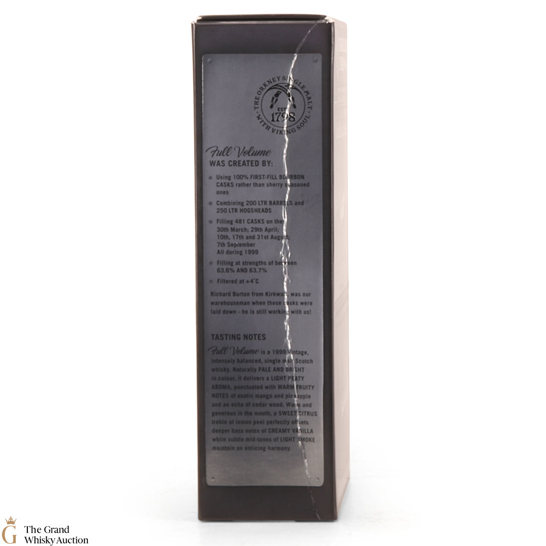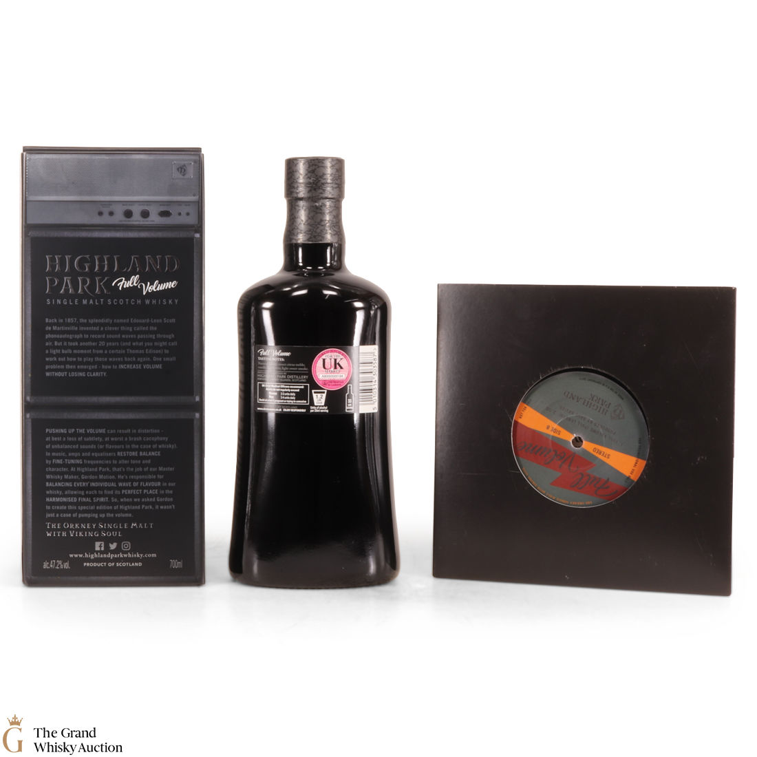 Full Volume by Highland Park was distilled in 1999 and bottled in 2017 from 481 casks. The single malt was matured exclusively in first-fill bourbon casks and was bottled at 47.2% ABV and comes presented in a themed presentation box resembling speaker.