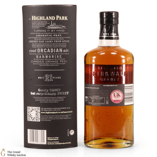 21 Year Old Highland Park is considered one of the best expressions Highland Park produces by many. Originally created exclusively for global travel retail and duty-free markets, this whisky was named Best Single Malt of the Year at the World Whisky Awards 2009. Released in October 2007, Highland Park 21 is a full-flavoured, powerful, sweet single malt with a rich smoky finish.