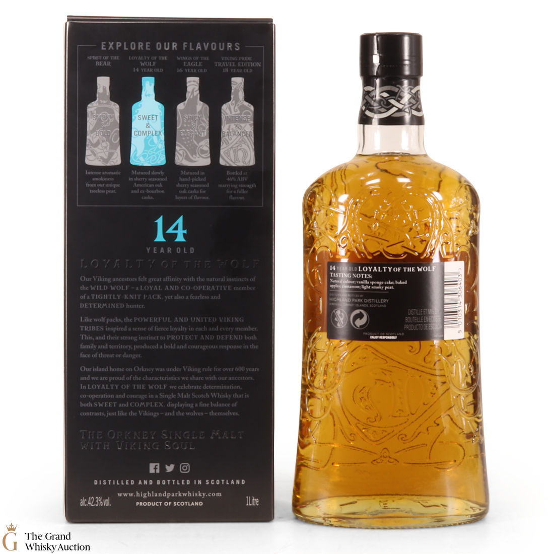 The 'Loyalty of the Wolf' by Highland Park is a 14-year-old single malt. This is a 1L bottling.