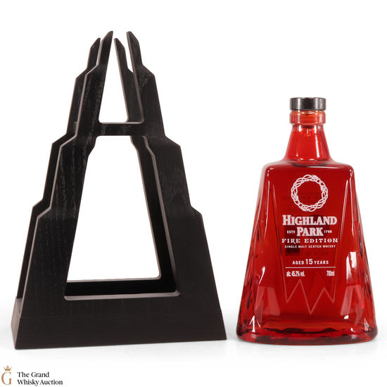 This stunning Highland Park 15 year old single malt follows the 'Ice' edition to complete this Highland Park two-part series. The 'Fire' edition celebrates Muspelheim, the glowing Norse fire realm of destruction. The malt was matured in refill Port casks and bottled at 45.2% abv. It's presented in a cradle shaped like a mountain.