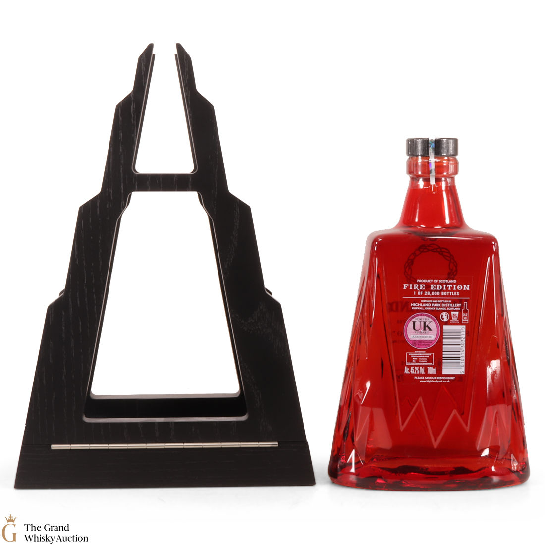 This stunning Highland Park 15 year old single malt follows the 'Ice' edition to complete this Highland Park two-part series. The 'Fire' edition celebrates Muspelheim, the glowing Norse fire realm of destruction. The malt was matured in refill Port casks and bottled at 45.2% abv. It's presented in a cradle shaped like a mountain.