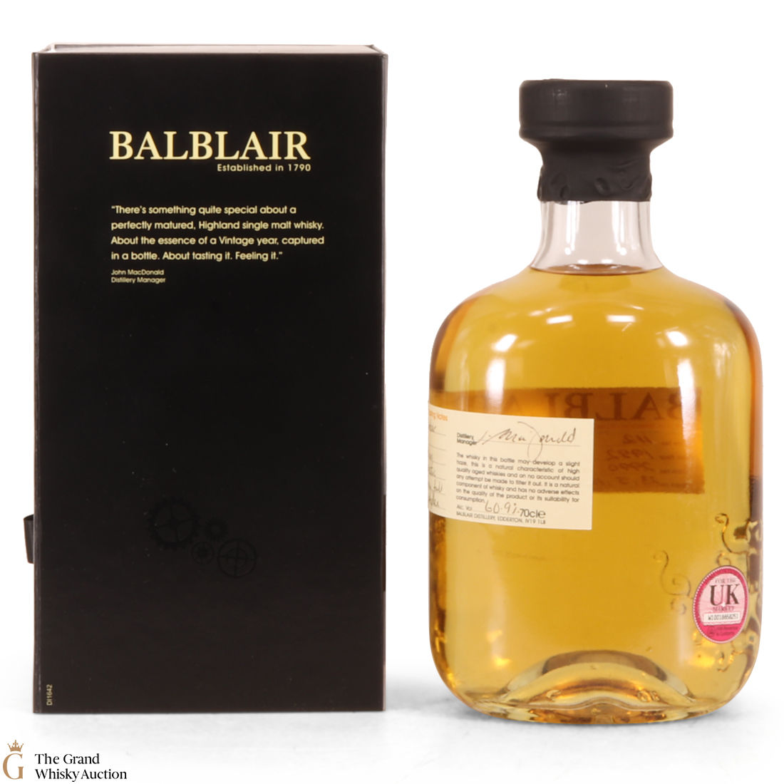 Distilled in the Highlands of Scotland, this Balblair was hand-bottled/filled on the 23rd/5/12.