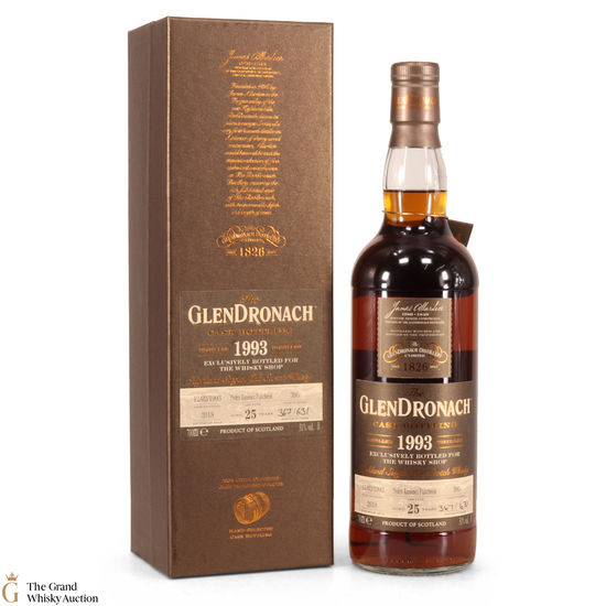 This 25 year old Glendronach single malt was distilled on the 12th of February 1993. This bottle was matured in a Pedro Ximenez Puncheon cask - No. 395. It was bottled in 2018 exclusively for The Whisky Shop.