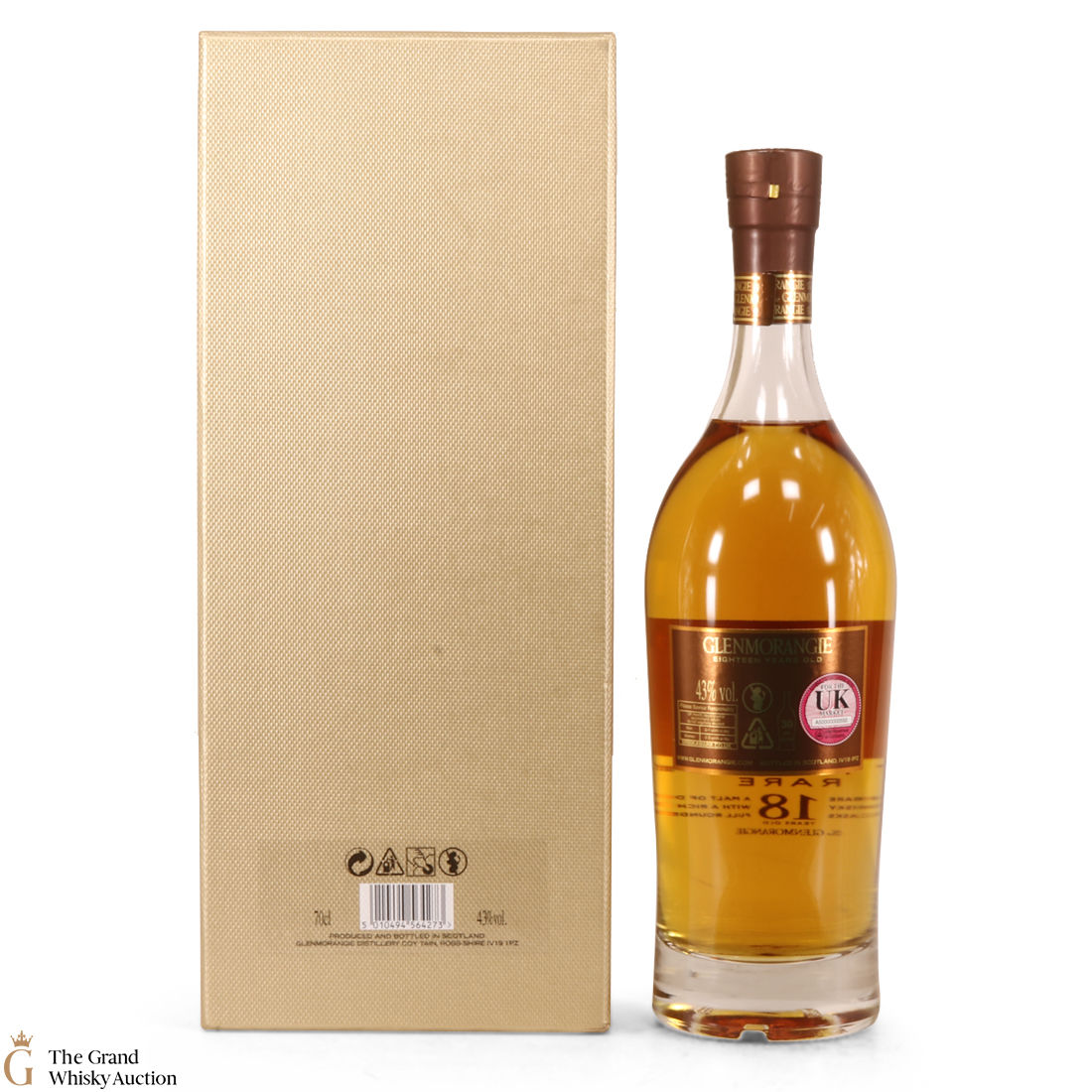 This bottle is an 18 year old Extremely Rare, Highland single malt produced by Glenmorangie. It has been perfected by the sixteen men of Tain who have specially aged this bottle for 18 years in superior oak casks and a period in Oloroso Sherry casks.