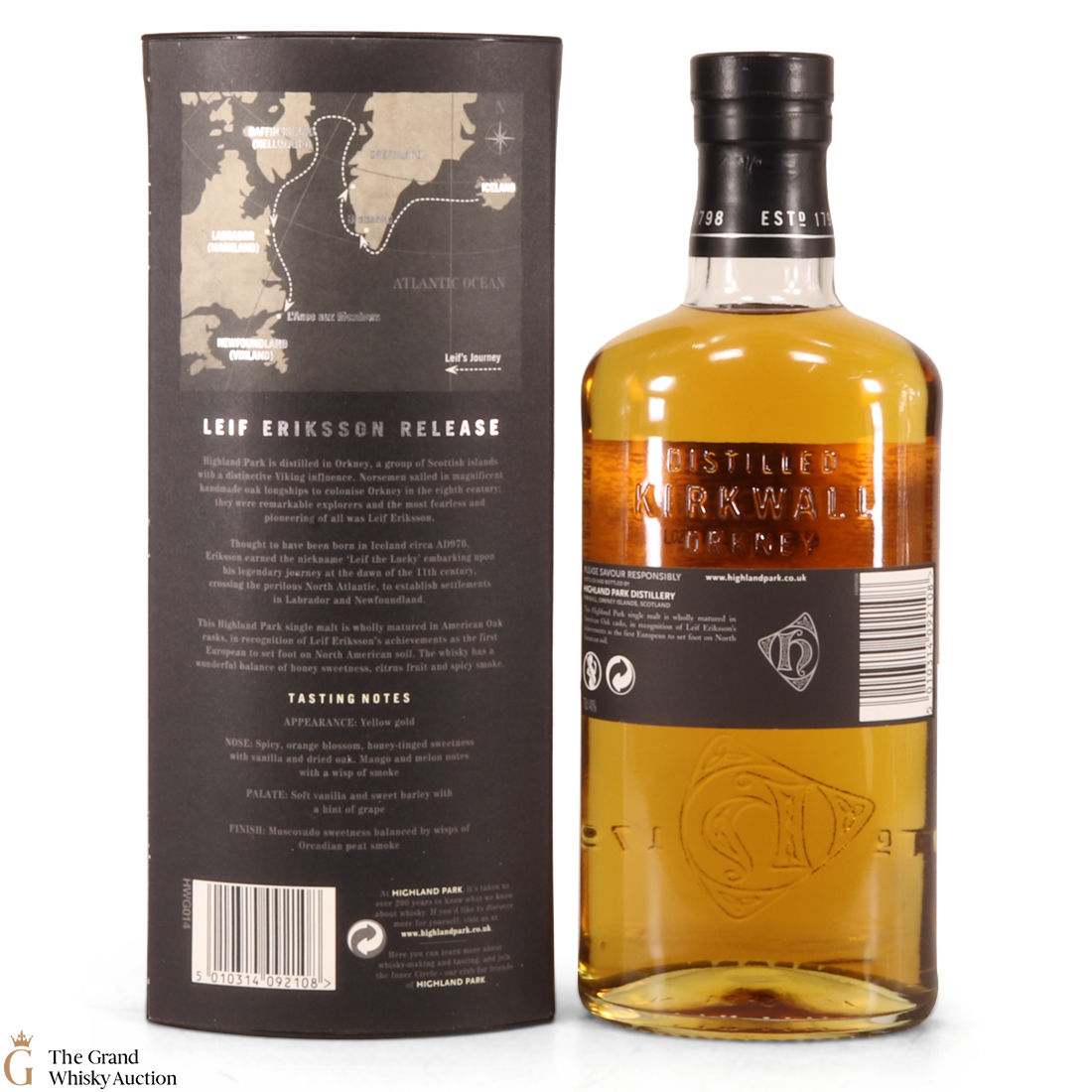 Launched in March 2010, for the travel retail market, Highland Park Leif Eriksson Limited Edition was released to celebrate the first European to reach America over a thousand years ago. The single malt was matured in American oak casks, both ex-bourbon and ex-sherry in recognition of Leif Eriksson, a pioneering Viking explorer, as the first European man to set foot on American soil.