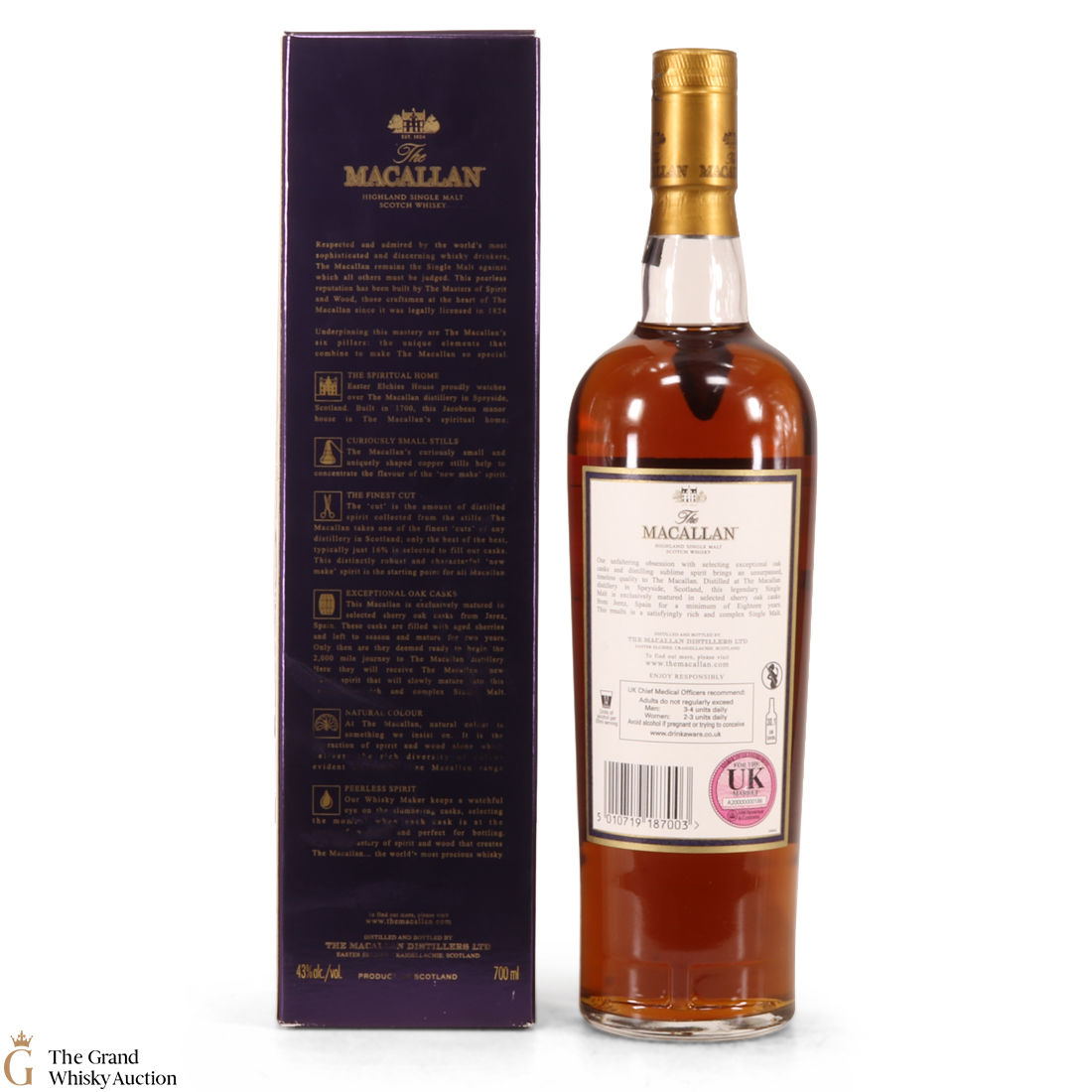 This annual release of The Macallan's popular 18 Year Old Sherry Oak is matured exclusively in sherry seasoned casks, built from both Spanish and American oak, providing a beautifully dark flavour with rich aromas. This bottling was distilled in 1995.