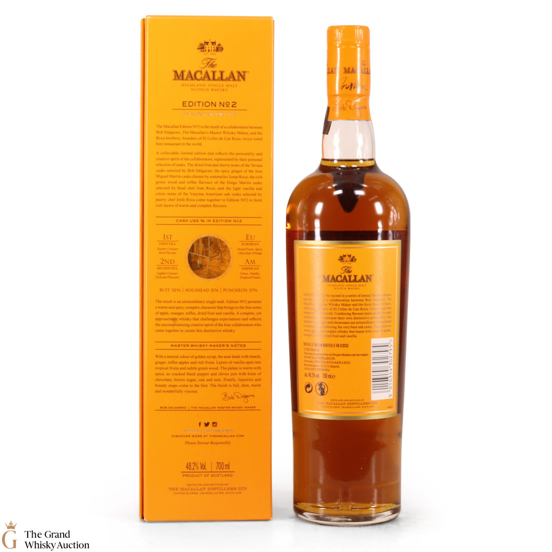 This is the second release from the Macallan Edition series. Edition No.2 is a collaboration between Macallan's master blender Bob Delgarno and legendary Spanish chefs Joan, Josep and Jordi Roca. The Rocas are the three brothers behind El Celler de Can Roca (named Best Restaurant in the World twice by Restaurant magazine). This single malt was drawn from a combination of sherry puncheons, butts and refill hogsheads.