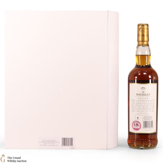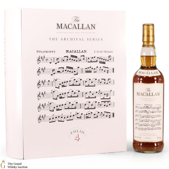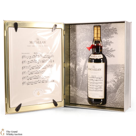 The fourth edition in the Archival Series from The Macallan. Folio 4 remembers the legendary advertising campaigns of the 1970s, 1980s and 1990s that brought The Macallan to the public’s attention outside of Scotland. It is presented in a beautiful book shaped, tin case. It features an advertisement including a Strathspey composed by James Scott Skinner (1843-1927). The advert notes that Skinner was so moved by his favourite malt he created a unique piece of music featuring his signature lilting notes with the simple catchphrase: “The Macallan. The Malt.”