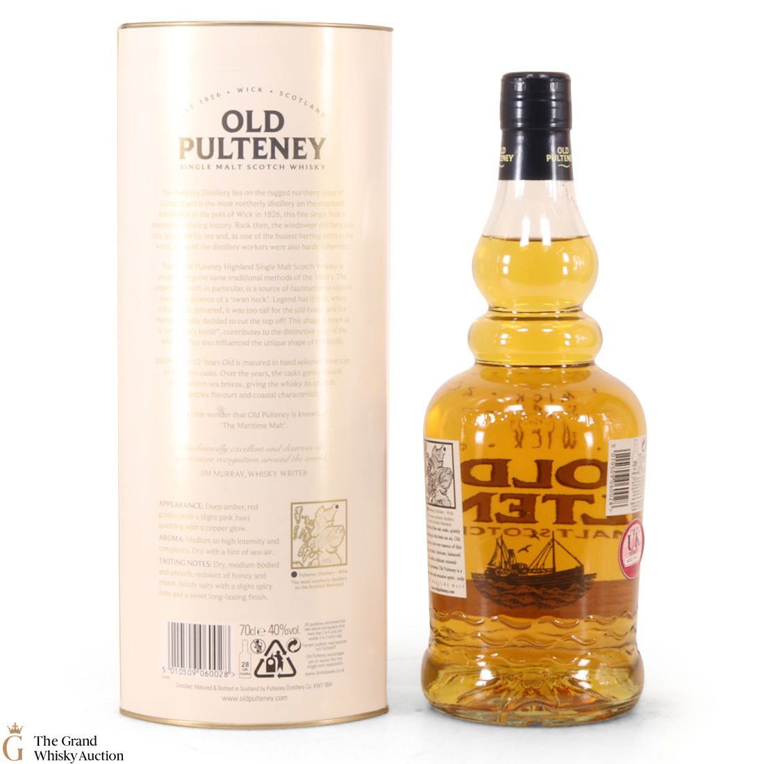 Due to the various ages of bottles and their seals, the condition of liquid is at the buyer's discretion and no claim can be lodged against failure/leakage in transit. Loss and breakage cover is available at 3% of the hammer price as standard. If the lot is not insured, no claim can be lodged against the courier or The Grand Whisky Auction for breakage or loss in transit.