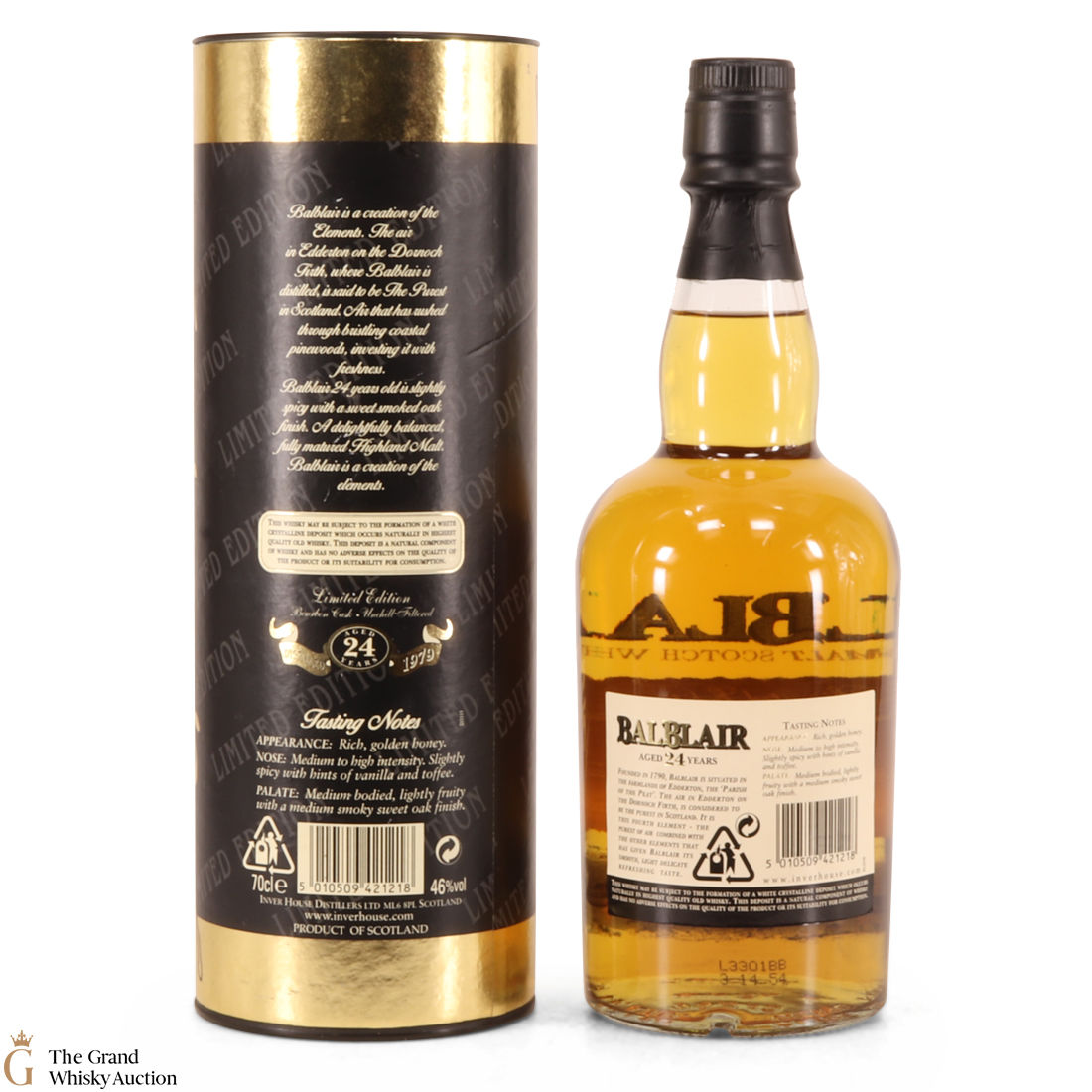 A limited-edition 1979 vintage from Balblair Distillery was matured for 24 years in a bourbon cask. It was bottled in October 2003 at 46%. This is an individually numbered bottle and is one of only 3150 produced.