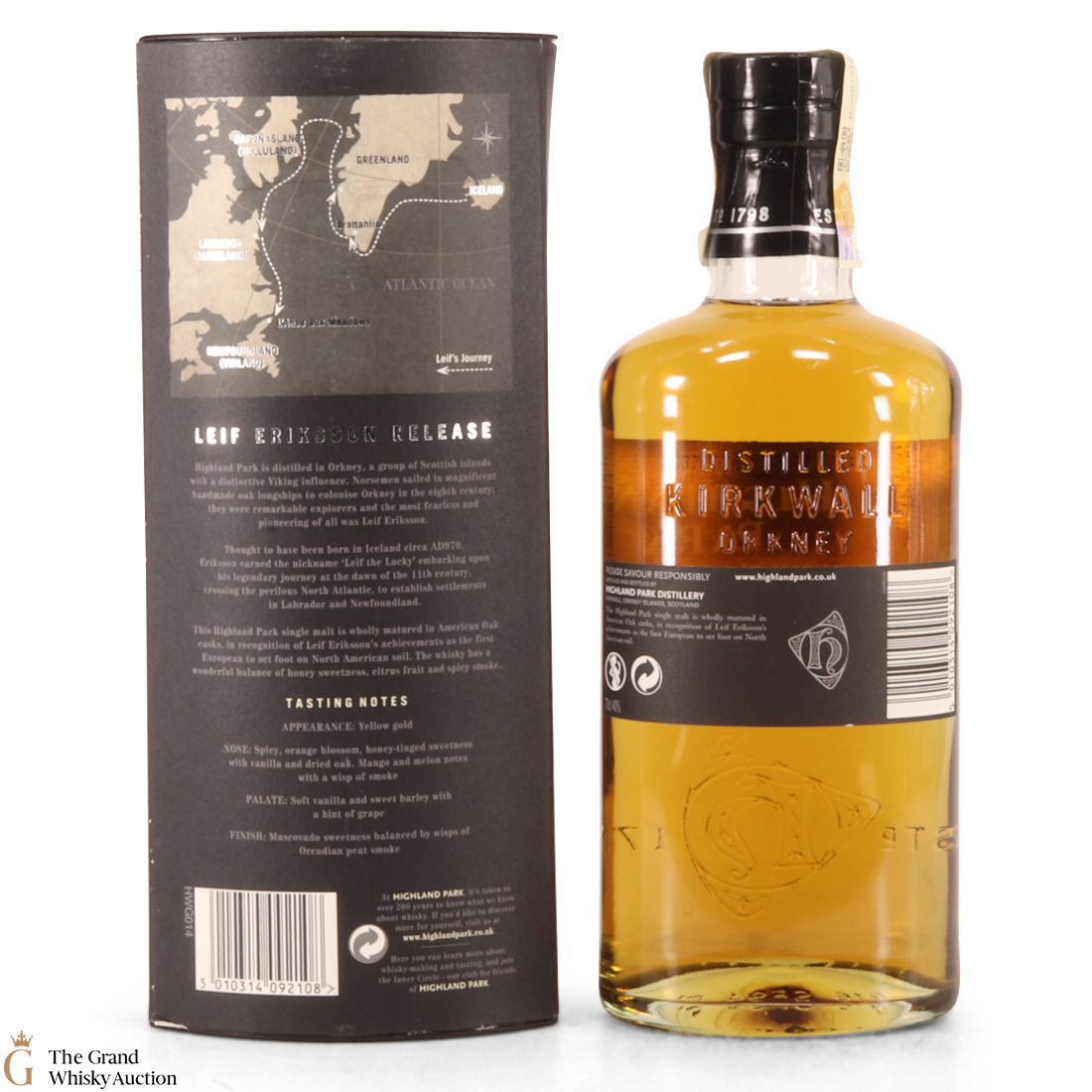 Launched in March 2010, for the travel retail market, Highland Park Leif Eriksson Limited Edition was released to celebrate the first European to reach America over a thousand years ago. The single malt was matured in American oak casks, both ex-bourbon and ex-sherry in recognition of Leif Eriksson, a pioneering Viking explorer, as the first European man to set foot on American soil.