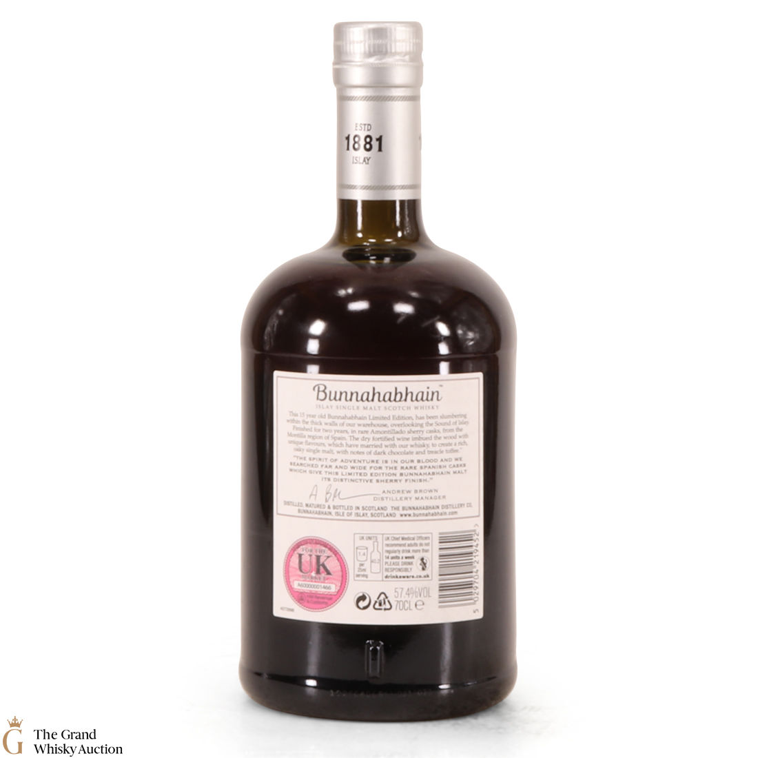 This is a 2019 distillery exclusive from Bunnahabhain Distillery. This Amontillado Cask Finish limited edition started life on the 20th of February 2003 in refill hogsheads before being transferred to Amontillado sherry hogsheads on the 26th of February 2016 where it spent two more years maturing in Bunnahabhain's coastal warehouses.