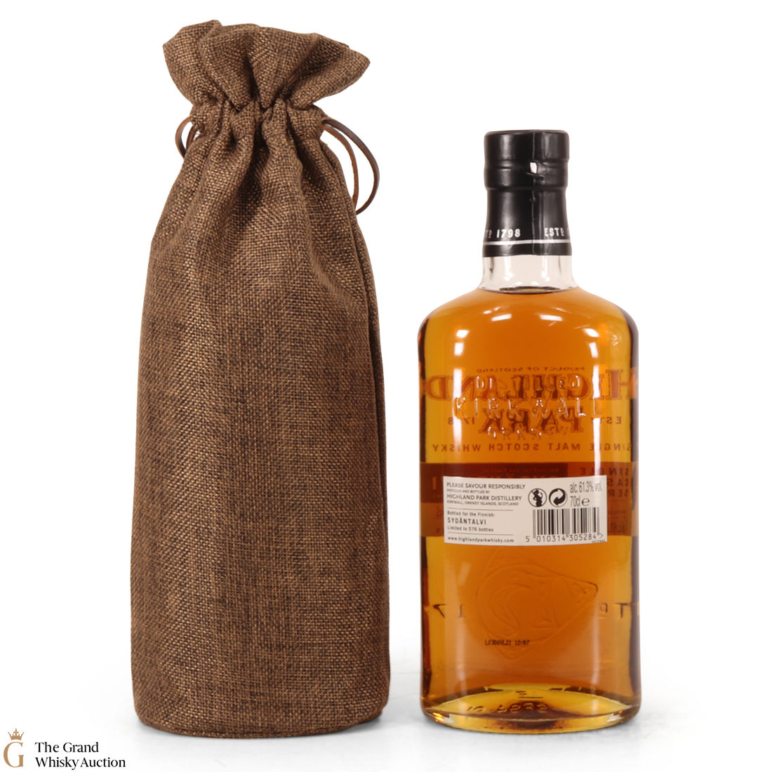One in the large series of single cask bottlings from the Orcadian distillery Highland Park. This specific bottling was done for the Finnish Sydäntalvi. It was distilled in 2001 and bottled in 2017. Only 576 bottles were produced from the single cask #2155.