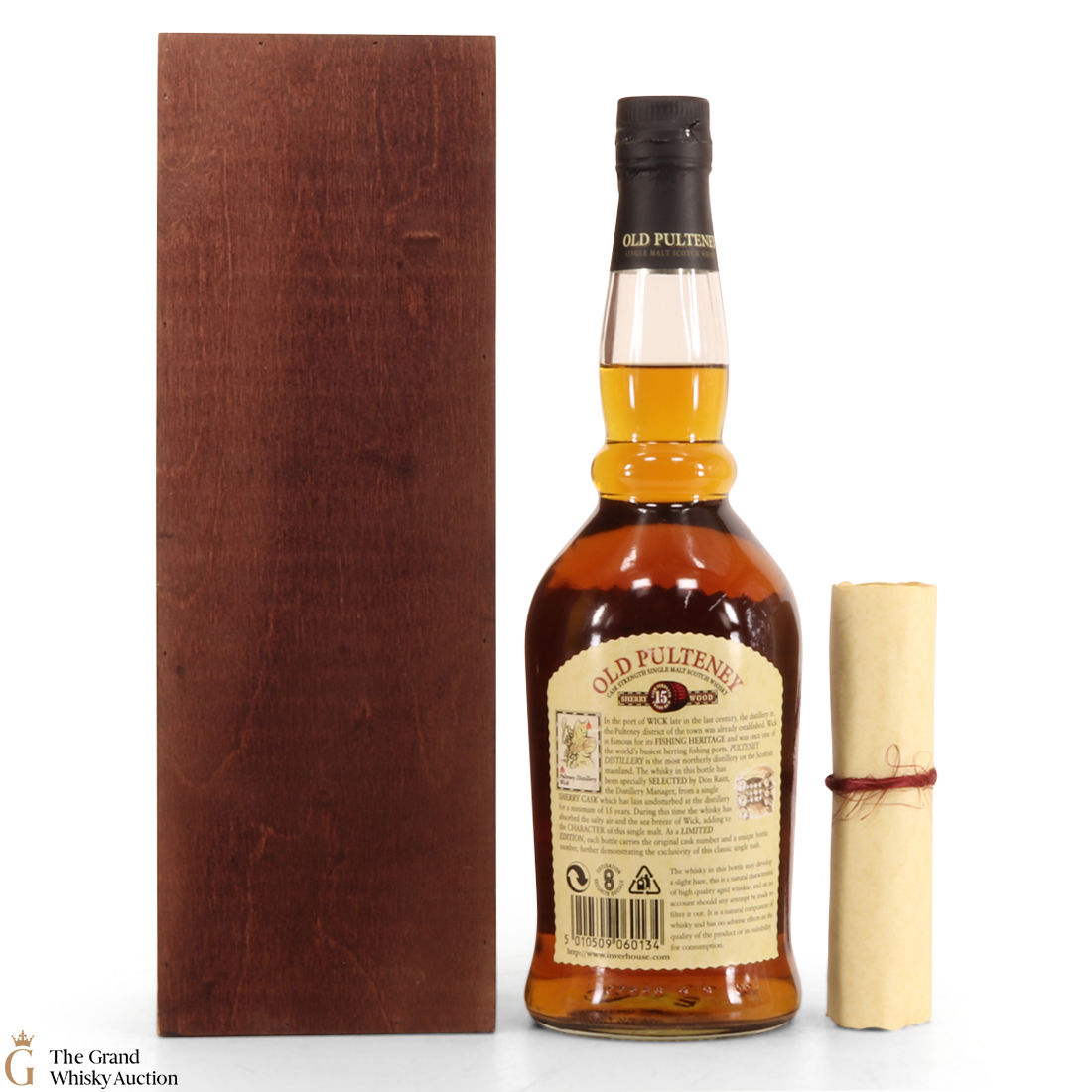 An Old Pulteney single cask from the Highlands of Scotland that was distilled in December 1982 and matured for 15 years in a sherry cask #1525.