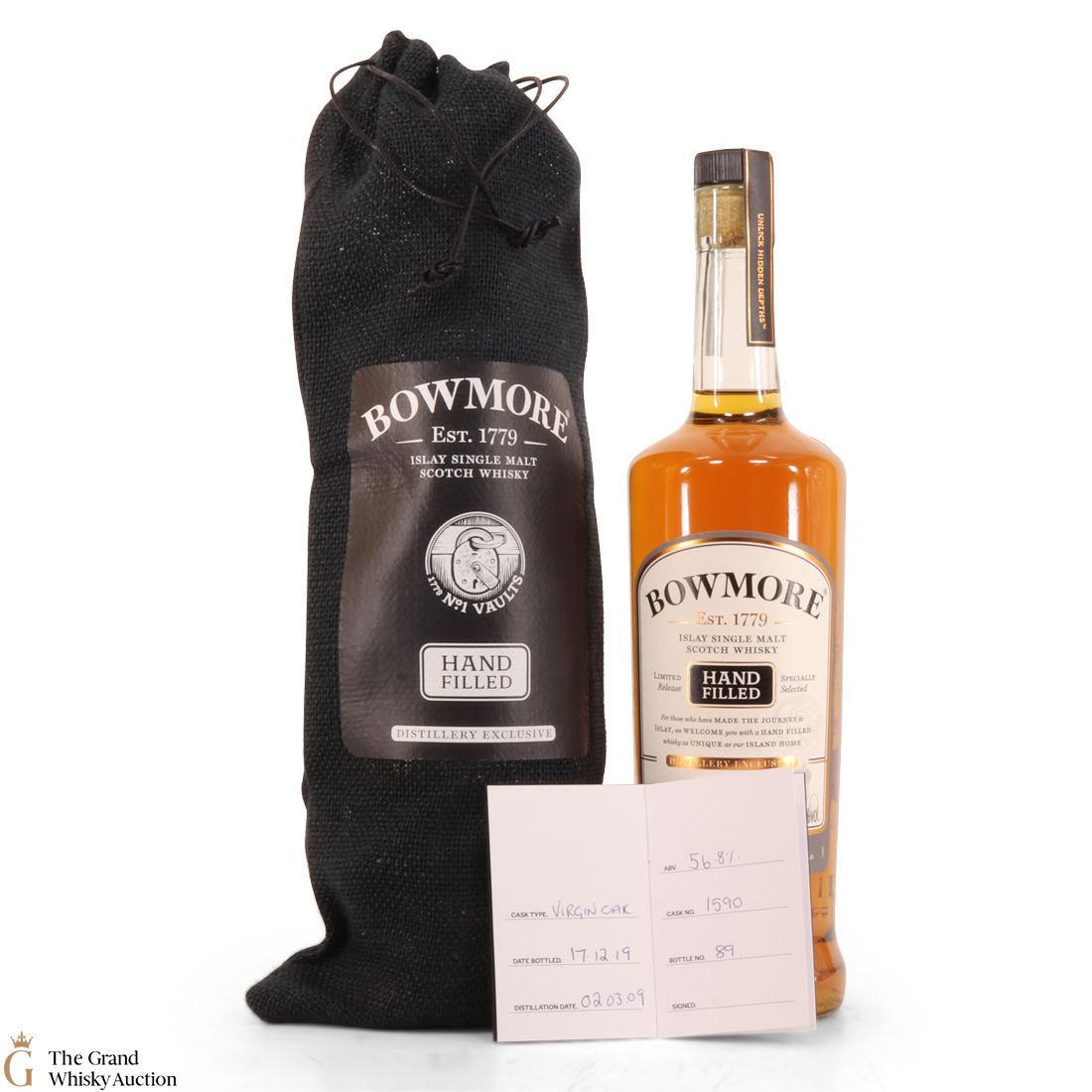 This single cask handfill from Bowmore Distillery. It was distilled in March 2009 and matured in virgin oak cask #1558 until December 2019 when it was bottled at 56.8% abv.