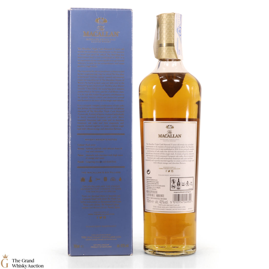 This 15 year old Macallan single malt was released in 2018 as part of the Triple Cask range (which was brought out to replace the Fine Oak range in 2018). This whisky has been matured for 15 years in a combination of European sherry seasoned casks, American sherry seasoned casks and American ex-bourbon casks.