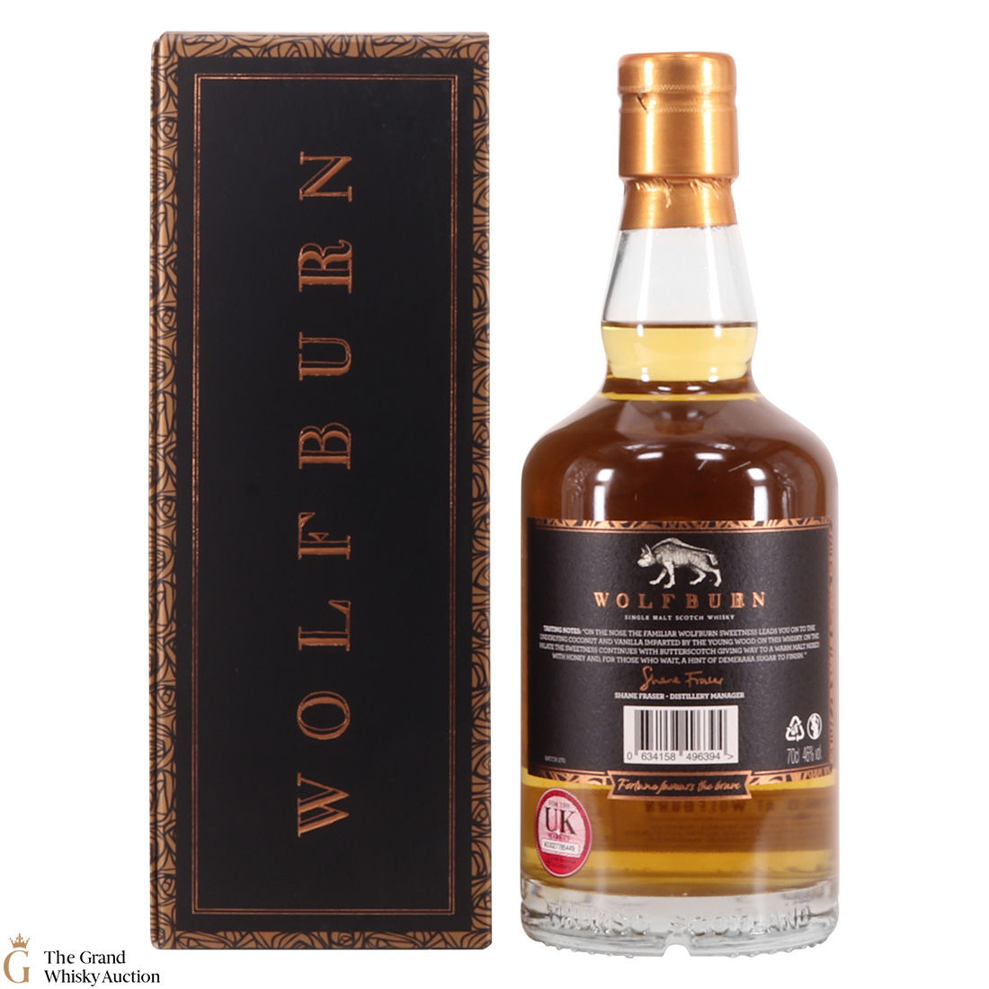 Due to the various ages of bottles and their seals, the condition of liquid is at the buyer's discretion and no claim can be lodged against failure/leakage in transit. Loss and breakage cover is available at 3% of the hammer price as standard. If the lot is not insured, no claim can be lodged against the courier or The Grand Whisky Auction for breakage or loss in transit.
