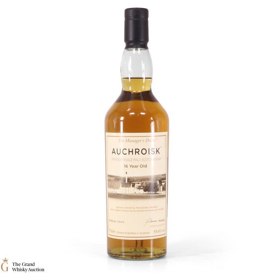 This 16 year old single malt from the Auchroisk Distillery is part of The Manager's Dram series exclusively for Diageo employees (formerly United Distillers). It was bottled in November 2015 at 55.6%.