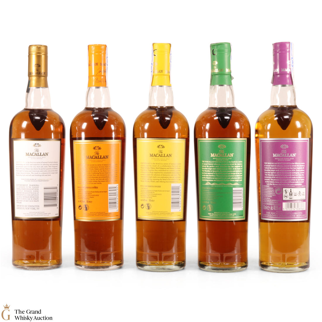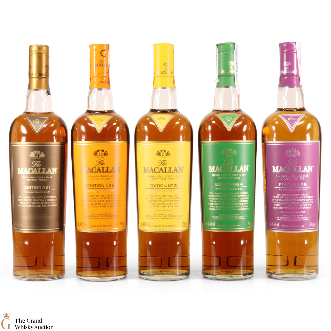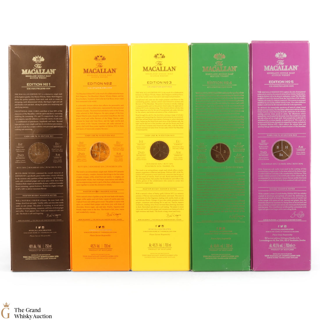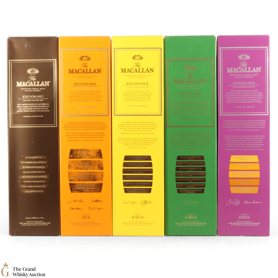 This lot brings together the Macallan Edition set to date, comprising of Edition no. 1, 2, 3 4 and 5 in the annual limited edition series.