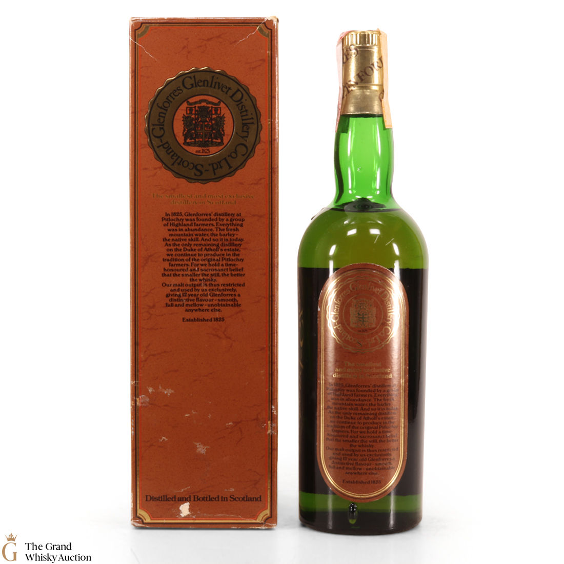 This is a rae bottle of Glenforres 12-Year-Old All Highland Malt Scotch whisky, produced and bottled by William Whitely & Co. Bottled under Edradour’s original name of Glenforres in the early 1980’s before the first Single Malt was released in 1986.