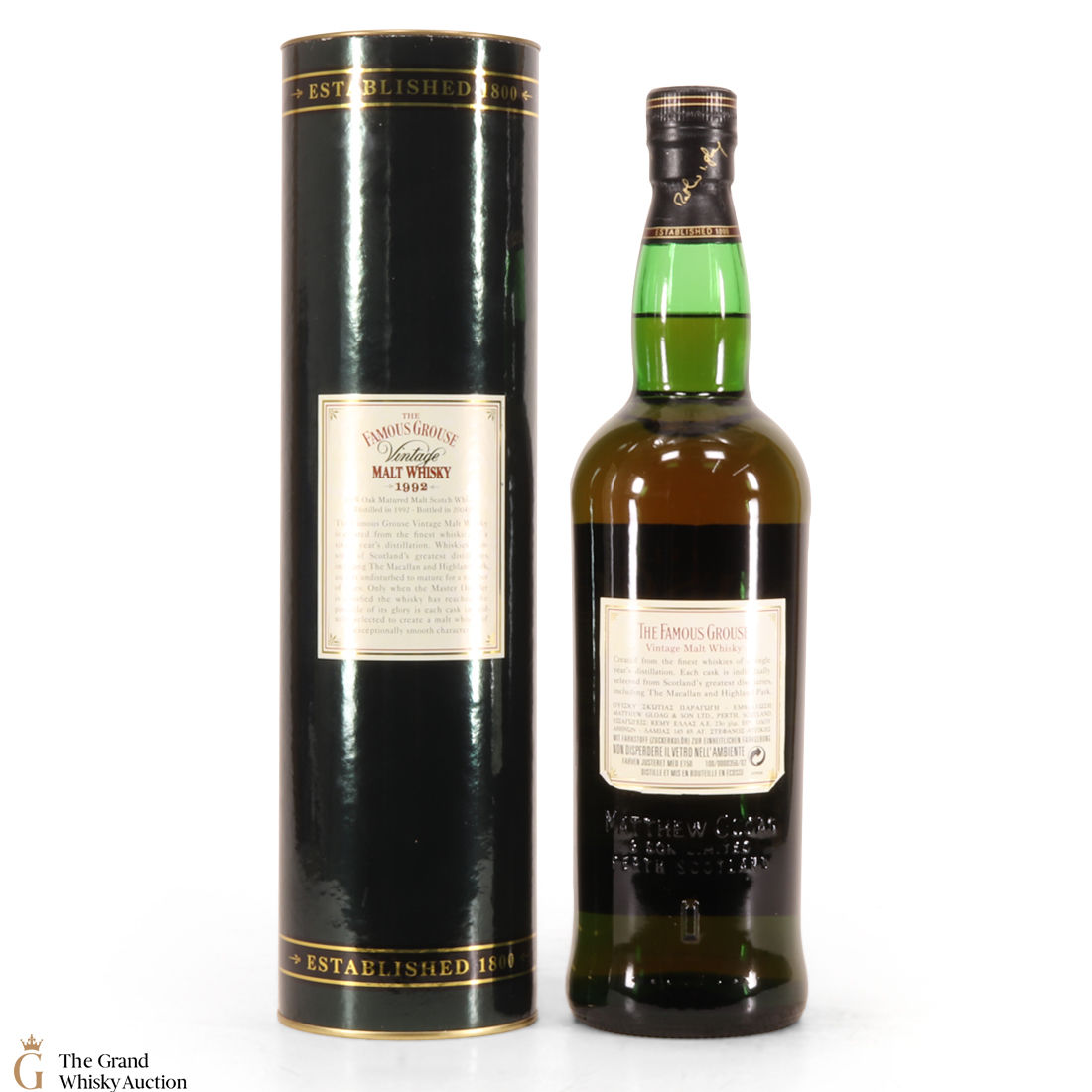 This is a litre bottling of Famous Grouse - 1992 Vintage, which was relased following the success of the 1989 vintage. This vatted malt from Famous Grouse includes Highland Park and Macallan.