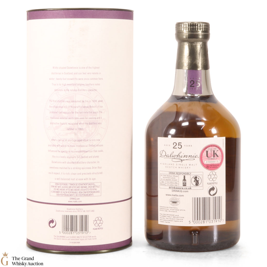 Due to the various ages of bottles and their seals, the condition of liquid is at the buyer's discretion and no claim can be lodged against failure/leakage in transit. Loss and breakage cover is available at 3% of the hammer price as standard. If the lot is not insured, no claim can be lodged against the courier or The Grand Whisky Auction for breakage or loss in transit.