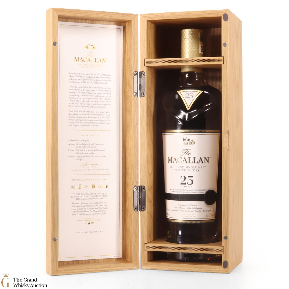 This is the 2019 edition of Macallan's 25 Year Old Sherry Oak. It comes with a stunning wooden presentation box. It's matured exclusively in hand-picked sherry oak casks from Jerez for a quarter of a century.