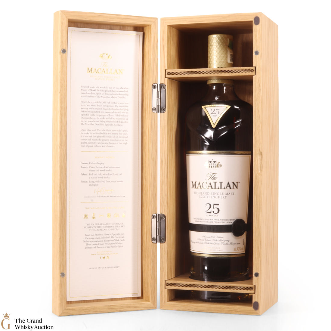 This is the 2019 edition of Macallan's 25 Year Old Sherry Oak. It comes with a stunning wooden presentation box. It's matured exclusively in hand-picked sherry oak casks from Jerez for a quarter of a century.