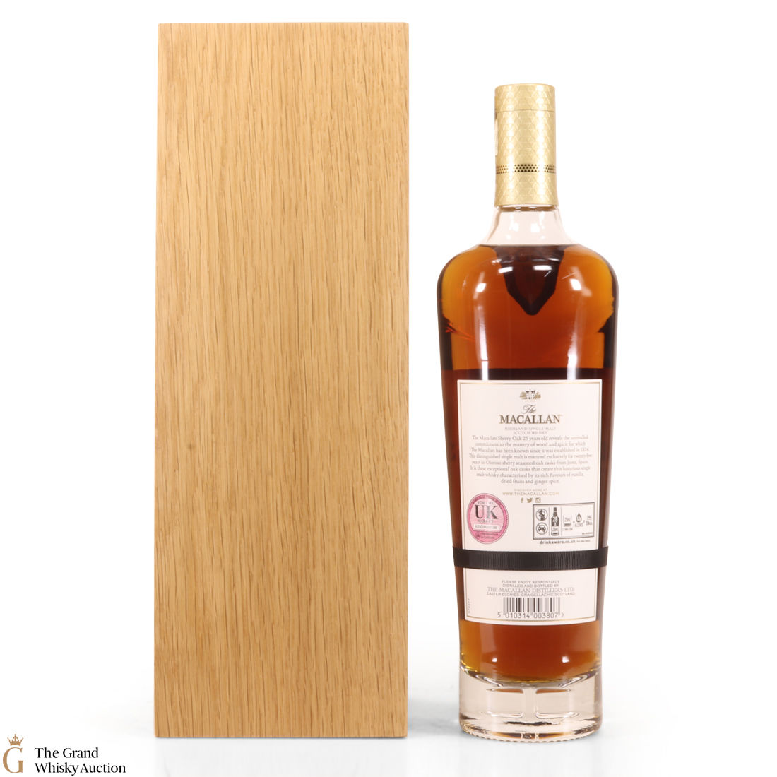 This is the 2019 edition of Macallan's 25 Year Old Sherry Oak. It comes with a stunning wooden presentation box. It's matured exclusively in hand-picked sherry oak casks from Jerez for a quarter of a century.