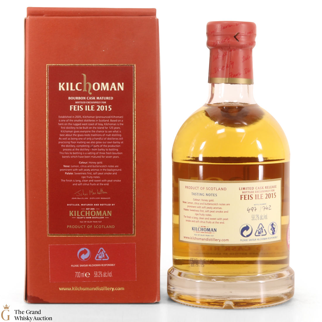 This was the Kilchoman Fèis Ìle 2015, which was sold exclusively at Kilchoman Distillery. Matured in bourbon casks numbers 245, 249 & 250 distilled May 2008, it was bottled in May 2015 at 58.2% ABV. This is one of only 742 bottles produced.