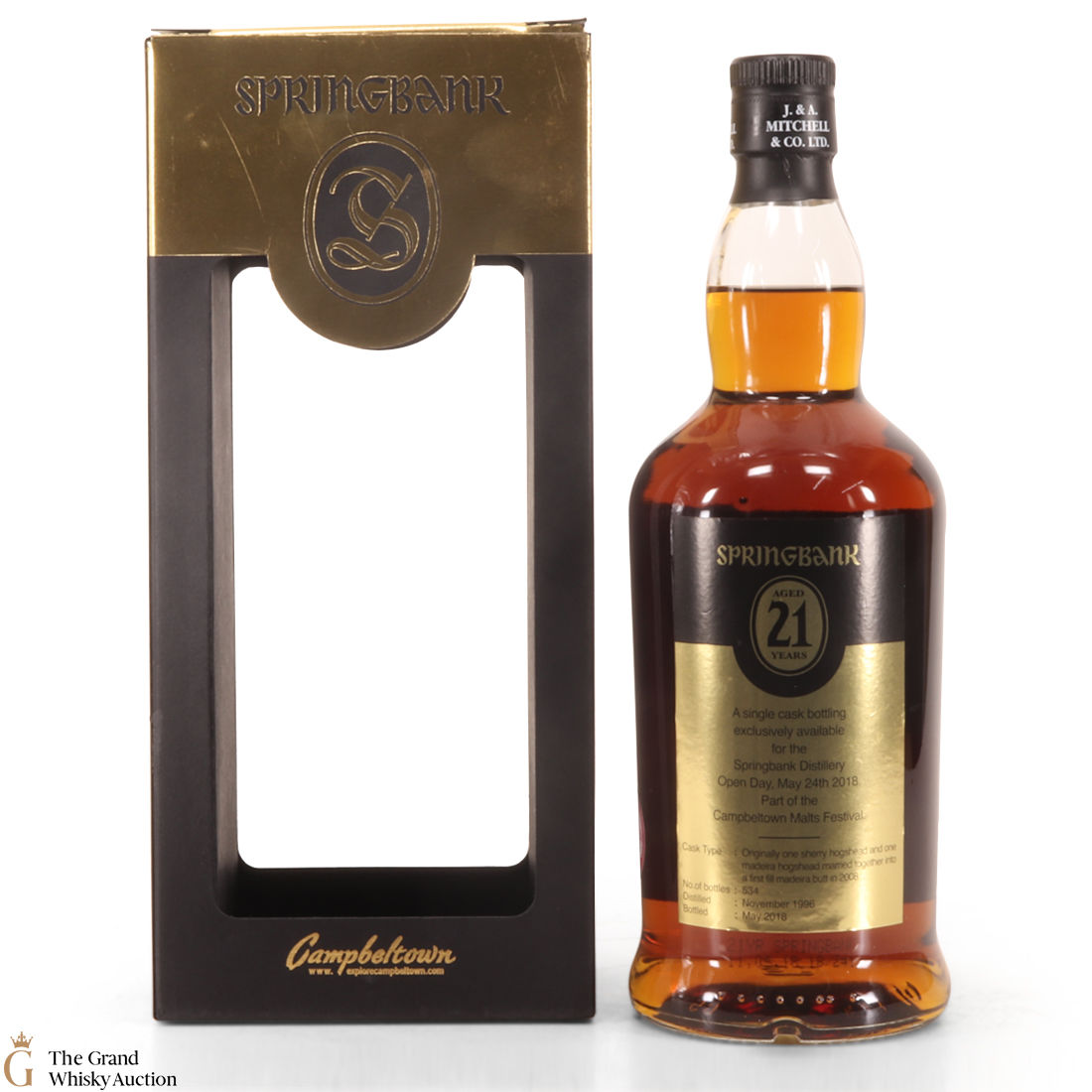 This Springbank 21-Year-Old single cask was exclusively available at Springbank Distillery Open Day in May 2018. This is one of just 534 bottles produced. Distilled in November 1996, it has been atured in a first fill Maderia Butt, and was bottled 2018 at 46%.
