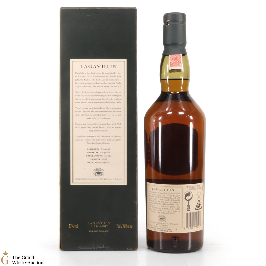 This is a popular and much sought-after single malt with the massive peat-smoke that's typical of southern Islay - but also offering richness and a dryness that turns it into a truly interesting tipple. The 16 year old, aged in oak casks has truly become a benchmark Islay dram from the Lagavulin distillery.