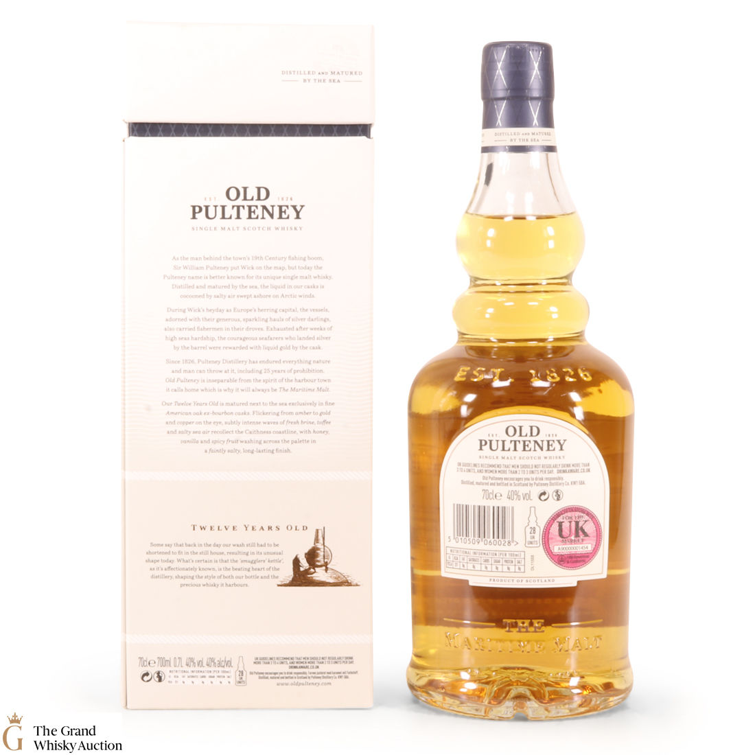 Matured only in air-dried, hand-selected ex-bourbon casks, Old Pulteney 12-Year-Old Whisky has won many awards. Lingering sea tastes with a sweetness.